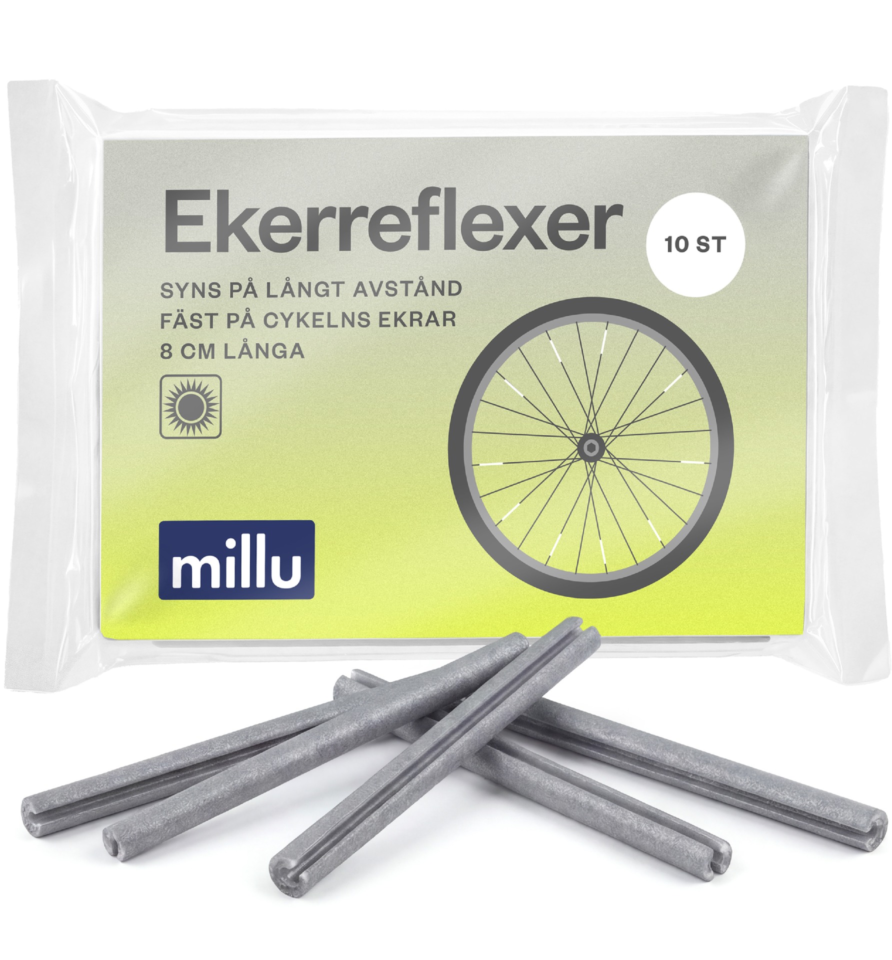 att fästa reflexpinnarna på både fram- och bakhjulen för bästa synlighet. Reflexen